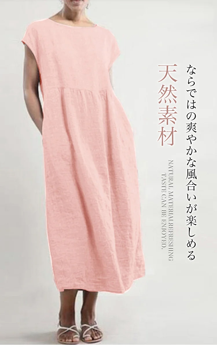 通気性に優れた綿麻ワンピース