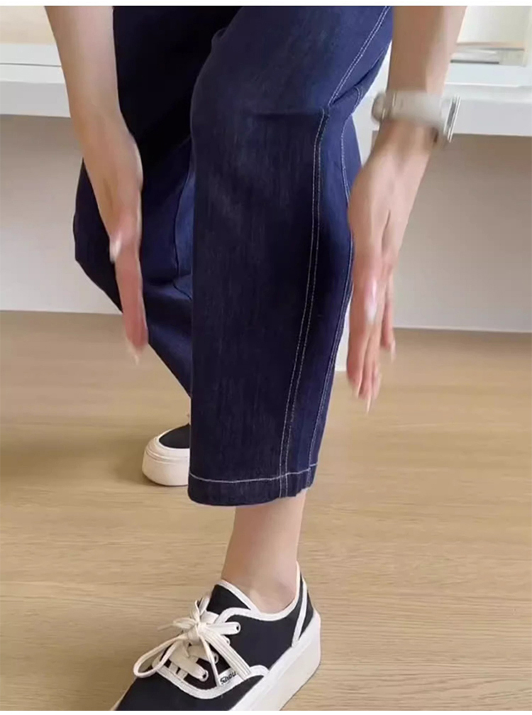 女性向けトレンド8分丈デニムパンツ後ろ姿